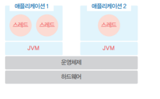 : 자바 애플리케이션의 실행 환경인 JVM은 각각 별도의 프로세스로 실행된다.( 스택이나 힙 메모리 영역 공윹)