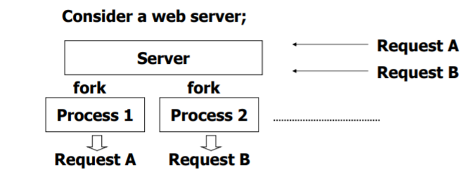 : 서버에서는 많은 요청들이 지속적으로 도착하고, 도착할 때마다 fork 호출 후에 해당 task를 실행하게 된다.