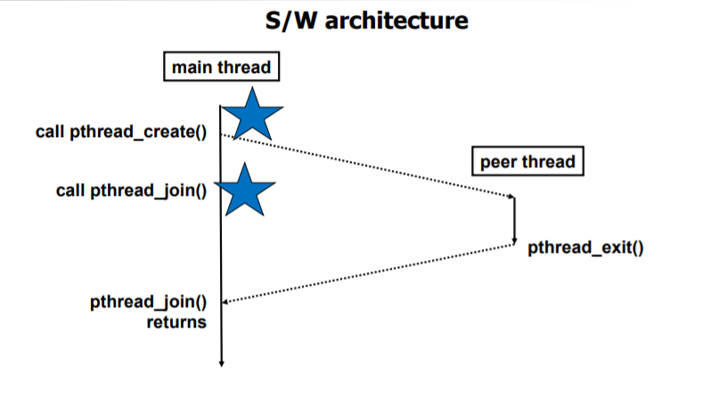 peer thread가 종료되고 나서는 pthread_exit() 가 실행되고, 이 리턴값이 pthread_join()으로 리턴되어서 나머지 main thread 코드가 실행되게 된다.